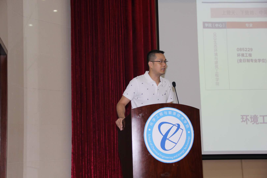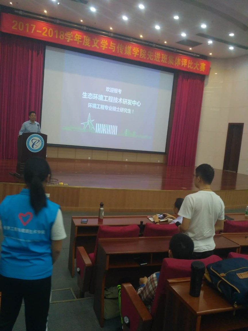 随后,牛军峰老师对生态环境工程技术研发中心进行了介绍,该中心成立于2016年,师资力量雄厚,科研能力强,实验室实验设备齐全,而且设有奖学金,老师动员学生们积极报考。